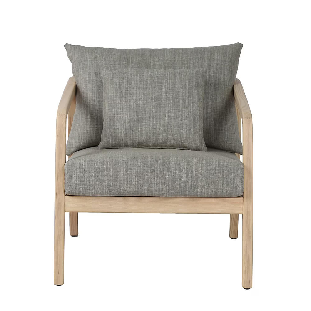 Natural wood, faux leather and a soft linen-like fabric combine in this elegant and warm accent chair. Featuring a pillowy back and a generous seat, Kenari packs good looks and comfort into one modern silhouette.